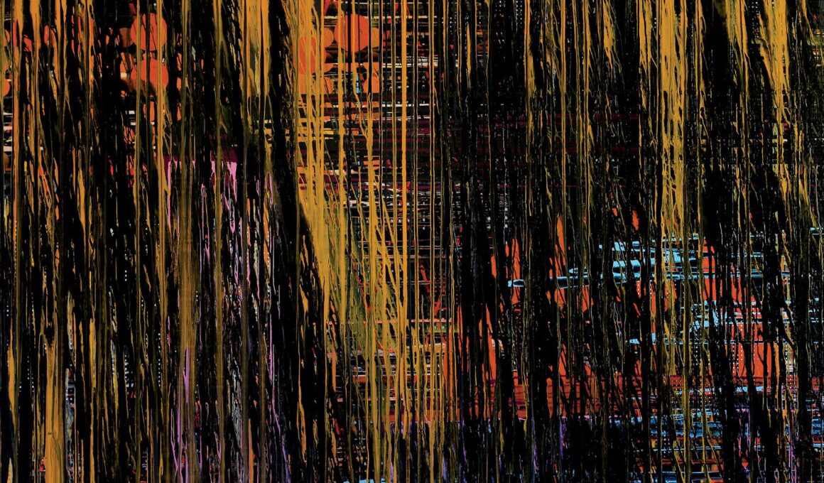 A série de pinturas “Fluido” se alinha a uma genealogia histórica da abstração iniciada por Morris Louis na década de 1950, nos Estados Unidos. Depois, outros artistas também tiraram proveito da força gravitacional na pintura, como Helen Frankenthaler, Robert Motherwell e Jackson Pollock (embora este usasse um outro procedimento, chamado “dripping”, que se tornou sua assinatura).